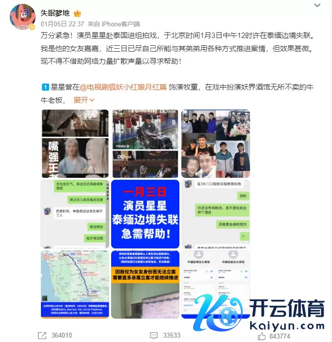 自1月5日王星女友微博发声,称男友赴泰国剧组拍戏,3日中午在泰缅边境失联。